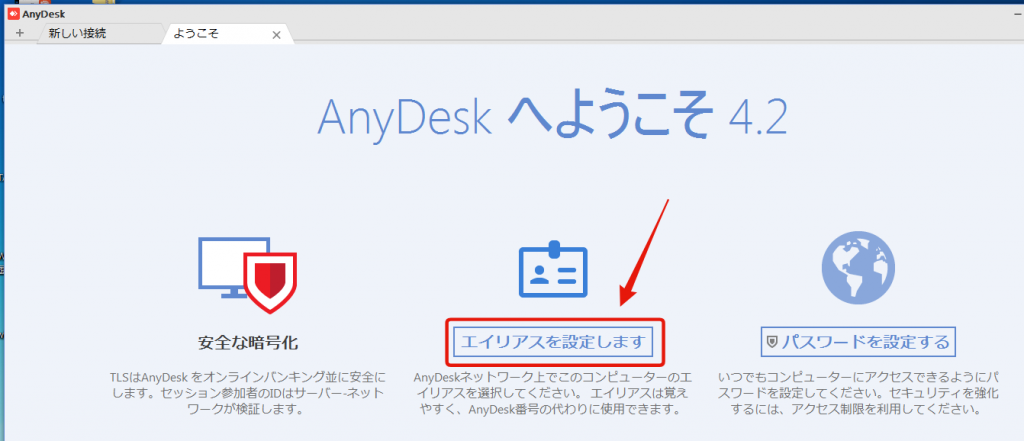 この画面が出たら、「エイリアスを設定します」をクリックしてください。聞き慣れない単語ですが、これは「パソコンに名前を付けて管理する」的な意味合いです。